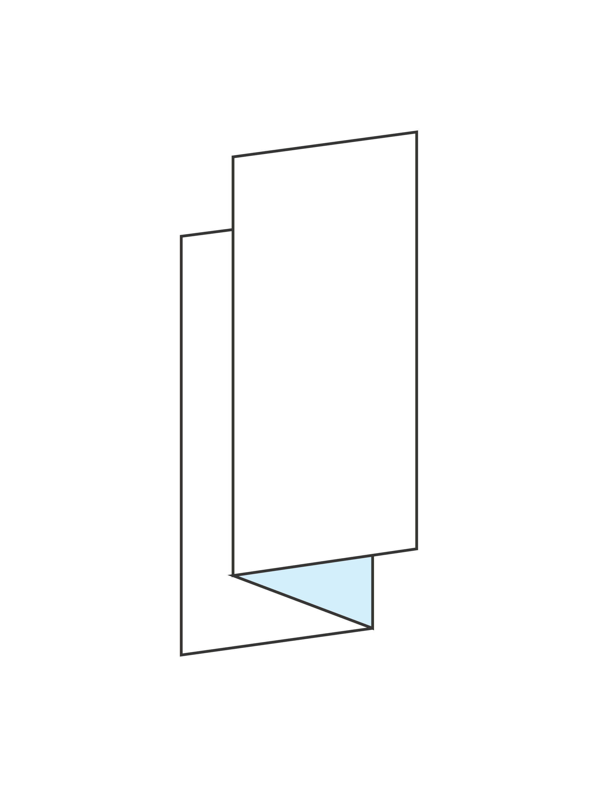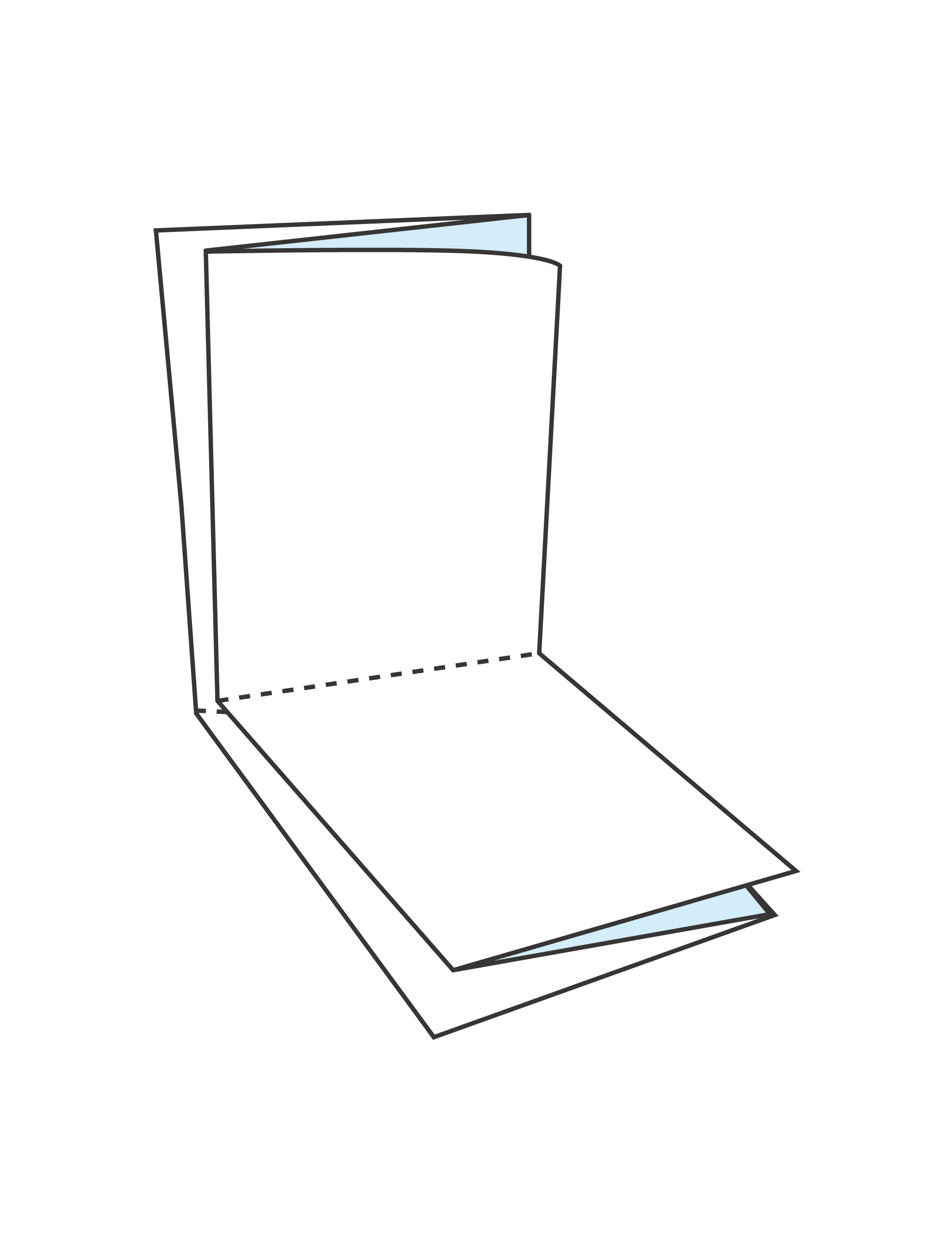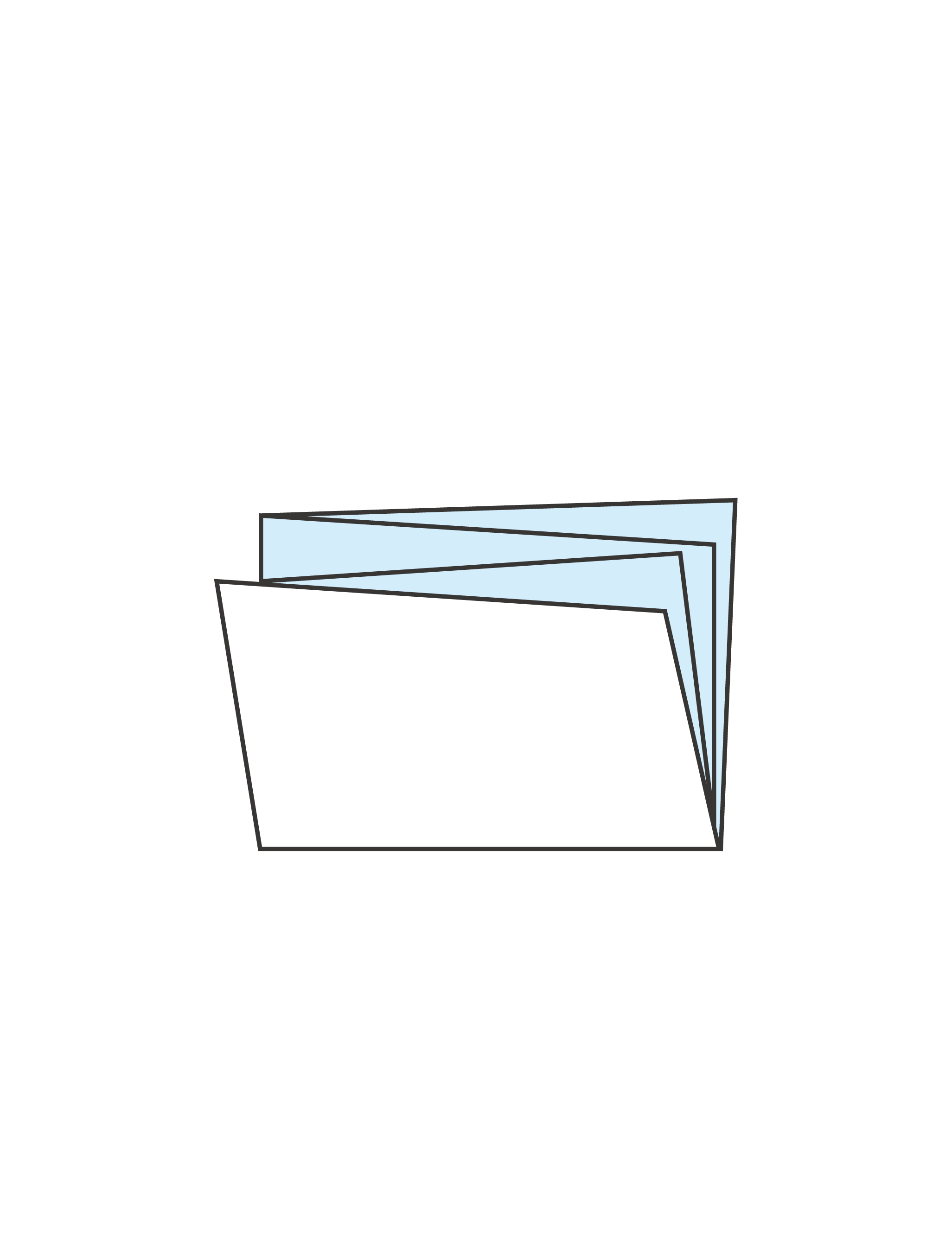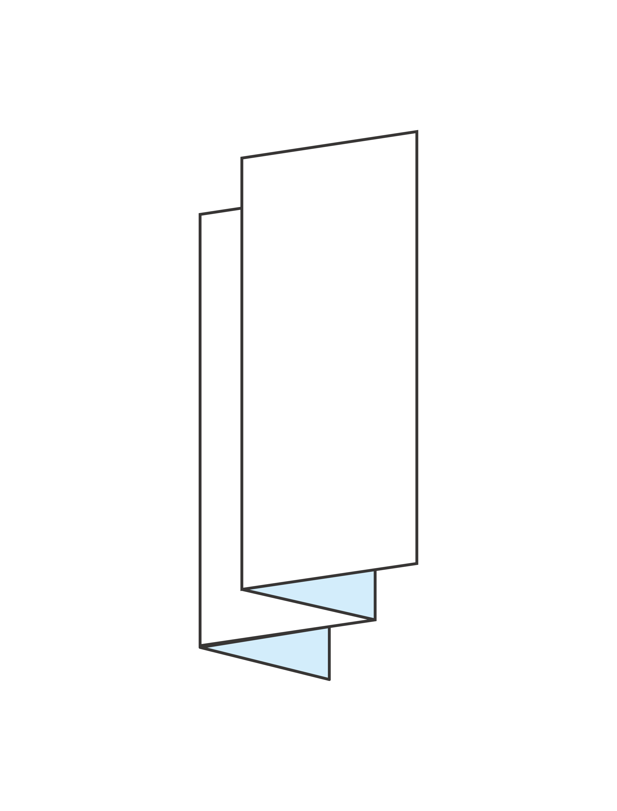 折り加工の中で一番多く使われています。会社案内や新聞折り込みチラシなど、様々な用途でお使いいただけます。